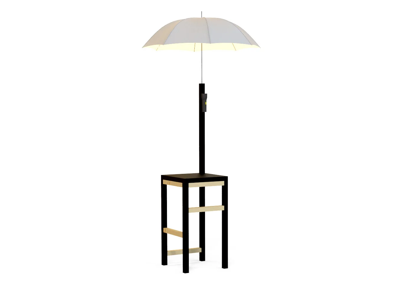 Med DIN PAVILLON bringes stolen ud på gaden, ikke som en traditionel havestol, men som din egen personlige pavillon, med eget tag og egen belysning. Hver stol har en paraply integreret i det lange stoleben og en lommelygte påspændt. Paraplyen bruges som tag i regnvejr og giver skygge til de solrige dage. Ved aftenstide slås paraplyen op, lommelygten tændes og paraplyen bliver en lampeskærm. De i alt 25 stole giver 25 enkeltstående pavilloner i én. Som tyverisikring samles 5 stole med en rød wire til en enhed.